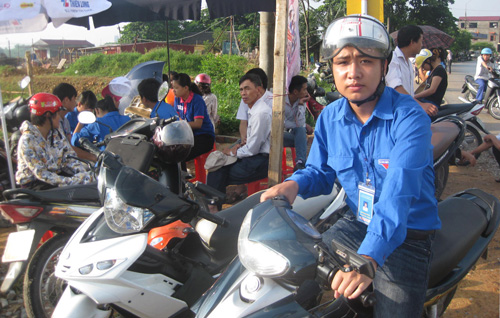 2 chiếc mũ bảo hiểm, 1 đội đầu, 1 dự phòng dành cho khách, họ dắt xe máy ra khỏi nhà, đi tìm gặp thí sinh (TS) nghèo để phục vụ. Họ gồm 20 thành viên đội xe ôm miễn phí, trong đó có 5 thanh niên tình nguyện ở phường Tân Lập, 14 sinh viên tình nguyện của Trường Cao đẳng Thương mại - Du lịch và 1 cán bộ Thành đoàn T.P Thái Nguyên trực tiếp tham gia.