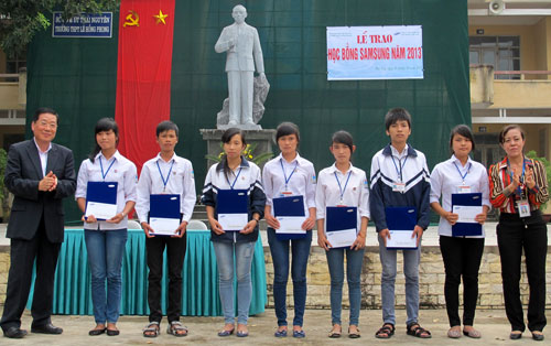 Chiều 16-10, Công ty TNHH Sam Sung Electronics Việt Nam tổ chức tổ chức Lễ trao học bổng Sam Sung năm 2013 (ảnh) cho học sinh Trường THPT Lê Hồng Phong.