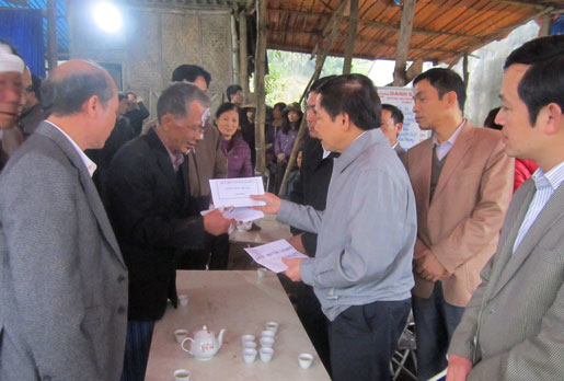 Chiều 27-2, Đoàn công tác của tỉnh do đồng chí Dương Ngọc Long, Phó Bí thư Tỉnh ủy, Chủ tịch UBND tỉnh dẫn đầu đã đến thăm, động viên và hỗ trợ 5 triệu đồng cho gia đình ông Khuông Quyền (sinh năm 1947, trú tại tiểu khu Lê Hồng Phong, thị trấn Đu, huyện Phú Lương) vừa bị cháy nhà, gây thiệt hại về người và tài sản (ảnh). Huyện Phú Lương cũng đã hỗ trợ gia đình bị nạn 3 triệu đồng.