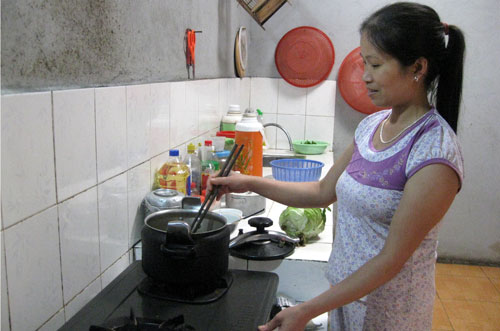 Sau khi đã chuẩn bị xong bữa cơm trưa cho gia đình nhà chủ, chị Liêu Thị Tuyến, người làm nghề giúp việc có ít phút thảnh thơi. Lúc đó, tôi lân la trò chuyện: Chị kể: Nhà có 5 sào ruộng, cấy cày không đủ thóc nuôi nhau, vì thế khi 2 con gái trở thành sinh viên thì tôi đi giúp việc lấy tiền nuôi chúng.