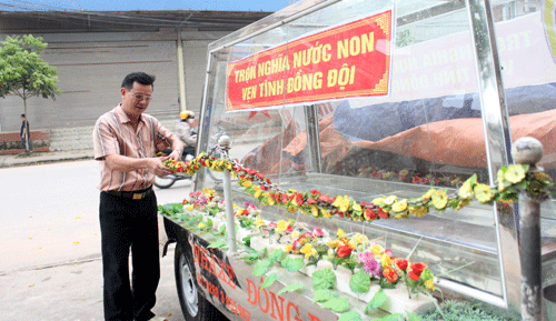 - Năm 2007, trong một lần cùng các đồng ngũ đi viếng một chiến hữu qua đời tại Bắc Ninh, tôi mới dám nêu ý tưởng và được mọi người ủng hộ nhiệt tình. Thế là tôi hạ quyết tâm. Đầu tiên, tôi tìm mua một chiếc xe U-oát cũ với giá 42 triệu đồng nhưng phải vay tới 35 triệu đồng từ mọi nơi, mua 5 bộ quần áo tiêu binh, thắt lưng da, cờ chiến thắng, cờ phủ áo quan, loa đài, nhạc chiêu hồn tử sĩ… Đến năm 2009 “sắm” thêm được bộ lăng kính để quan tài rồi dần “nâng cấp” và hoàn thiện qua từng năm.