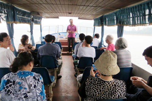 Theo anh Đoàn chia sẻ, nếu như thuộc luồng lạch là khả năng quan trọng của người lái tàu, thì hiểu tâm lý, sở thích của khách du lịch là điều quan trọng của hướng dẫn viên. Do không biết trước đối tượng mình phục vụ là ai nên anh Đoàn luôn chuẩn bị sẵn nhiều “giáo án”. Với người cao niên anh nói về lịch sử, chiến khu cách mạng; với các bà, các cô anh nói về vùng đất địa linh nhân kiệt, về tâm linh gắn với hiện thực; với sinh viên anh nhấn vào câu chuyện tình vượt bao cách trở của nàng Công, chàng Cốc; với lứa tuổi nhi đồng, anh kể chuyện Bác Hồ với Việt Bắc, liên hệ với cuộc sống ngày hôm nay.