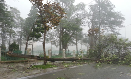 Mặc dù bão không đổ bộ trực tiếp vào TP Móng Cái, nhưng do ảnh hưởng của bão đã khiến nhiều cây xanh trong thành phố bị quật đổ.