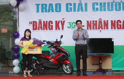 Đây là giải thưởng nằm trong Chương trình “Đăng ký 3G, nhận ngay Air Blade” được Chi nhánh Vietel Thái Nguyên triển khai từ ngày 20-5-2014 đến 20-6-2014 cho tất cả các thuê bao trên địa bàn tỉnh Thái Nguyên khi đăng ký sử dụng 3G qua đầu số 191 hoặc 9123.