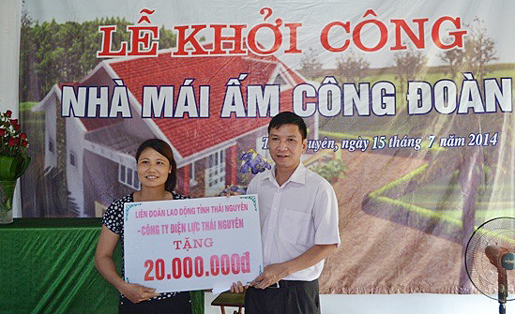 Mới đây, Công ty Điện lực Thái Nguyên và Công ty CP quản lý & xây dựng giao thông Thái Nguyên đã tổ chức xây dựng nhà "Mái ấm công đoàn" cho gia đình đoàn viên công đoàn Bùi Thị Nga - Công nhân Công ty CP Quản lý & Xây dựng giao thông Thái Nguyên.