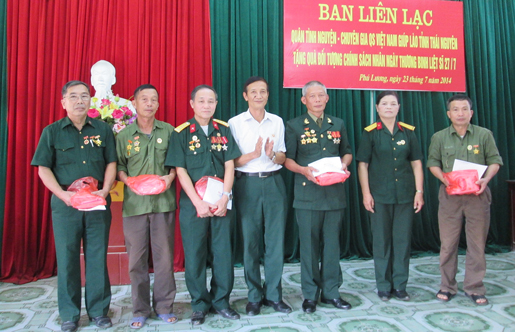 Ngày 23-7, tại UBND thị trấn Đu (Phú Lương), Ban liên lạc Cựu quân tình nguyện và chuyên gia quân sự Việt Nam tỉnh Thái Nguyên đã tổ chức gặp mặt và tặng quà các thương, bệnh binh từng là quân tình nguyện Việt Nam sang Lào làm nhiệm vụ quốc tế, hiện đang sinh sống trên địa bàn huyện.