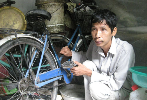 Bà Hảo đưa tôi vào thăm phòng của Long. Phải gọi mấy câu thật to Long mới mở cửa bước ra ngoài. Đó là 1 căn phòng rộng chừng 15m2, bên trong kê xếp chật kín những xe đạp cũ, đồ phế liệu, toàn những đồ đạc chẳng biết để làm vào việc gì. Dù trong phòng đã có chiếc giường đơn được kê cao ngang thắt lưng, Long còn “bố trí” thêm một chỗ nằm trên nóc chiếc tủ cũ. Tôi lựa chỗ để bước vào phòng, hôi hám, chật chội và thấy trên tường những dòng chữ: Kinh doanh qua mạng; hỗ trợ tài chính, tuyển dụng nhân viên… do Long tự viết.