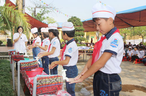 Ngày 15-10, tại Trường Tiểu học Vạn Thọ (Đại Từ), Tổ chức phi chính phủ Pháp EAST (Nước, Nông nghiệp và Y tế vùng Nhiệt đới) phối hợp với một số đơn vị liên quan tổ chức chương trình hưởng ứng Ngày Thế giới rửa tay bằng xà phòng 15-10.