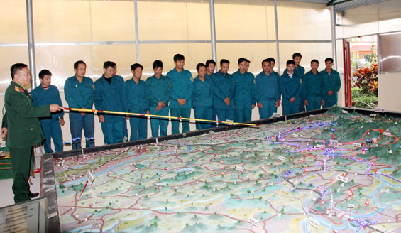 Một ngày giữa tháng 12, “thâm nhập” vào giờ học kế hoạch tác chiến của lớp Trung cấp chuyên nghiệp ngành Quân sự cơ sở khóa 2 đang được đào tạo tại Trường Quân sự tỉnh, chúng tôi bị hút vào giờ dạy của giáo viên bên sa bàn. Chỉ trong diện tích chưa đầy 10m2 nhưng hình ảnh thu nhỏ của xã Linh Sơn được hiện lên đầy đủ địa hình, địa thể, đặc điểm. Mọi con suối, ngọn núi... thể hiện rất rõ nét và được đánh dấu bằng hệ thống đèn nháy, biển hiệu. Giảng viên chỉ đến đâu, ở đó có đặc điểm gì, cần phải lập kế hoạch tác chiến như thế nào đều được hỗ trợ bằng ánh sáng (đèn) và âm thanh. Bởi vậy, dù không phải là học viên, chưa được đào tạo cơ bản về mảng kiến thức này nhưng chúng tôi cảm thấy dễ hiểu và tiếp thu.