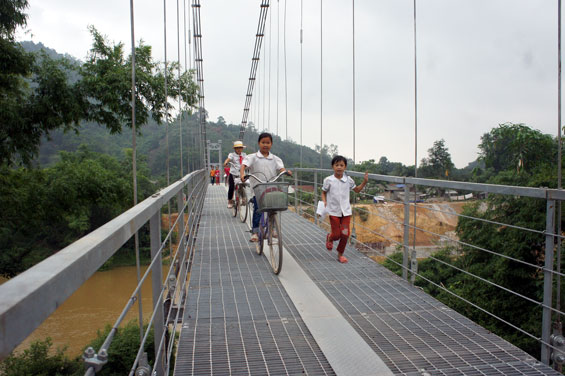 Ông Nguyễn Xuân Quyền, một người dân xóm Tân Yên chia sẻ: Khi biết được đầu tư xây dựng cầu treo của xóm, không riêng gia đình tôi mà bà con ở nơi đây ai cũng vui, tạo điều kiện dọn đường để đơn vị thi công vận chuyển thiết bị và vật tư xây dựng tập kết tại chân công trình. Riêng gia đình tôi, khi chính quyền địa phương vận động hiến đất để xây dựng hai mố cầu, chúng tôi đã hiến 300m2 đất để giúp cho đơn vị thi công sớm hoàn thành đúng tiến độ. Còn ông Hoàng Văn Tý, xóm Đồng Vung phấn khởi cho biết: Trước đây, chúng tôi chỉ được qua sông trong khoảng thời gian từ 6 giờ 30 phút đến khoảng 18 giờ, sau đó mọi hoạt động với bên ngoài phải ngừng lại. Bây giờ thì chúng tôi đi lại lúc nào cũng được. Mấy hôm trước, gia đình tôi nhận cây keo giống về trồng, thay vì đi lại mất cả ngày như trước kia, giờ chỉ cần chở mấy chuyến xe máy là xong, thật tiện lợi vô cùng.