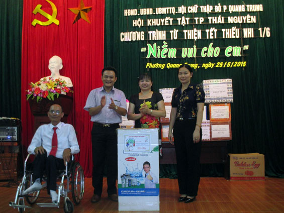 Nhân ngày Quốc tế thiếu nhi 1-6, tối 25-5, Hội Chữ thập đỏ phường Quang Trung phối hợp với Chi đoàn Đài phát thanh – truyền hình tỉnh, Hội Người Khuyết tật (NKT) T.P Thái Nguyên, Hội NKT Thị xã Sông Công tổ chức chương trình từ thiện “Niềm vui cho em” tại Trung tâm Bảo trợ xã hội tỉnh.