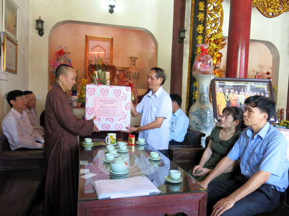 Thay mặt Đoàn công tác, đồng chí Phùng Đình Thiệu đã biểu dương những kết quả đạt được của các tầng lớp tăng ni phật tử trong thời gian qua. Đồng thời mong muốn các nhà sư, chức việc tiếp tục động viên tăng ni, phật tử chấp hành tốt các đường lối, chủ trương của Đảng, chính sách, pháp luật của Nhà nước cũng như tham gia tốt các phong trào thi đua yêu nước, phát triển kinh tế, xây dựng quê hương ngày càng giàu đẹp.