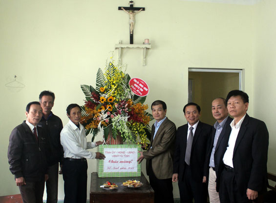 Ngày 22-12, Đoàn công tác của tỉnh do đồng chí Dương Hồng Vinh, Phó Trưởng Ban Dân vận Tỉnh ủy đã đến thăm và tặng quà Mục sư Triệu Phúc Tiến, đại diện Tổng hội thánh Tin Lành Việt Nam tại miền Bắc (tại số nhà 13, tổ 19, phường Hoàng Văn Thụ, T.P Thái Nguyên); Giáo họ Phúc Xuân (T.P Thái Nguyên); Giáo họ Quảng Nạp - Giáo xứ Phú Cường (xã Bình Thành) và Giáo họ thị trấn Chợ Chu, huyện Định Hóa (ảnh). Cùng đi có đại diện các sở, ngành của tỉnh.