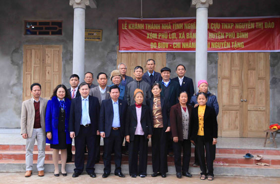 Ngày 18-1, Ngân hàng TMCP Đầu tư và Phát triển (BIDV) Chi nhánh Thái Nguyên phối hợp với Hội Cựu Thanh niên xung phong (TNXP) các cấp và chính quyền địa phương tổ chức khánh thành, bàn giao ngôi nhà tình nghĩa cho bà Nguyễn Thị Đào, xóm Phú Lợi, xã Bàn Đạt, huyện Phú Bình (ảnh).
