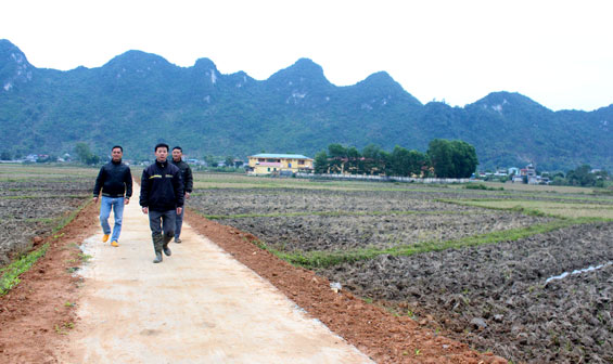 Chuẩn bị đón Tết Nguyên đán Bính Thân, người dân xóm Khấu Bảo có thêm một niềm vui lớn là tuyến đường bê tông nội đồng Đồng Mục - Nà Cây dài gần 400 mét vừa hoàn thành. Đường cũ chỉ là bờ ruộng, có chỗ rộng chưa đầy 1 mét, nay được bà con hiến đất, đắp nền rộng 4 mét và đổ bê tông phẳng phiu. Tuyến đường có giá trị xây dựng 182,4 triệu đồng, người dân đối ứng bằng ngày công và tiền trên 60 triệu đồng. Đặc biệt là người dân đã hiến 1.536m2 ruộng cấy 2 vụ (ước trị giá gần 70 triệu đồng). Công trình tạo thuận lợi cho bà con canh tác, đồng thời rút ngắn khoảng cách đến trường của trẻ em trong và ngoài xóm.