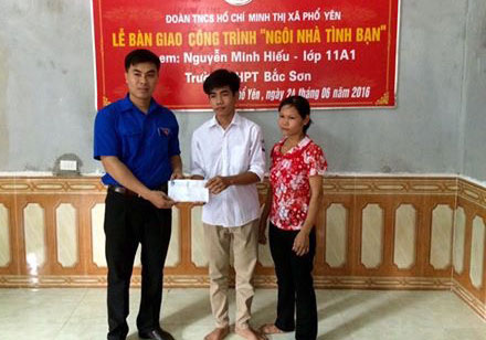 Sáng 24-6, Thị đoàn Phổ Yên phối hợp với Đoàn Thanh niên xã Minh Đức,Trường THPT Bắc Sơn tổ chức Lễ bàn giao nhàtình bạn cho đoàn viên Nguyễn Minh Hiếu tại xóm 2, xã Minh Đức.