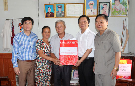 Đoàn đã đến thăm, động viên các gia đình: bà Đồng Thị Quất (vợ liệt sĩ), xóm La Giang, xã Bá Xuyên; bà Nguyễn Thị Ân (mẹ liệt sĩ), trú tại xóm Cây Lá; ông Nguyễn Ngọc Hòa là thương binh hạng 4/4, trú tại xóm Xuân Đãng 2; ông Chu Quang Thất nạn nhân chất độc hóa học, trú tại xóm Cây Lá, xã Bình Sơn. Tại các nơi đến thăm, đồng chí Phó Bí thư Thường trực Tỉnh ủy và các thành viên trong Đoàn đã ăn cần thăm hỏi sức khỏe, đồng thời mong muốn các gia đình tiếp tục phát huy tinh thần yêu nước, hăng hái thi đua đóng góp sức mình vào sự nghiệp xây dựng và phát triển của tỉnh nhà. Nhân dịp này, đồng chí đã trao quà của Tỉnh ủy, HĐND, UBND tỉnh cho các gia đình.