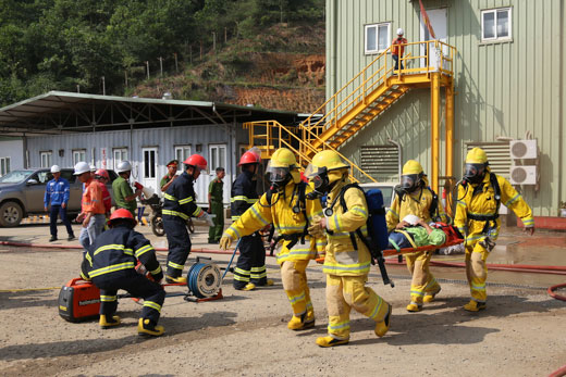 Ngày 28-10, Cảnh sát Phòng cháy và chữa cháy tỉnh đã tổ chức thực tập phương án chữa cháy và cứu nạn, cứu hộ tại Công ty Khai thác và Chế biến khoáng sản Núi Pháo ở xã Hà Thượng, huyện Đại Từ, tỉnh Thái Nguyên.