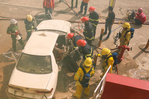 Tình huống giả định là xảy ra cháy tại kho thiết bị của Công ty làm 4 công nhân bị mắc kẹt trong kho, 2 người bị thương, mắc kẹt trong một xe ô tô. Phát hiện có cháy, lực lượng cơ sở tổ chức báo động, cắt điện, di chuyển tài sản, sử dụng phương tiện chữa cháy tại chỗ để chữa cháy ban đầu đồng thời điện báo cho Trung tâm ứng cứu khẩn cấp của công ty. Nắm được tình hình, lực lượng phòng cháy, chữa cháy cơ sở nhanh chóng huy động lực lượng, phương tiện chữa cháy, cứu nạn và y tế tới hiện trường triển khai chữa cháy, tìm kiếm người bị mắc kẹt. Nhận định đám cháy và tình huống cứu nạn còn phức tạp, lực lượng cơ sở đã điện báo Cảnh sát Phòng cháy và chữa cháy tỉnh.