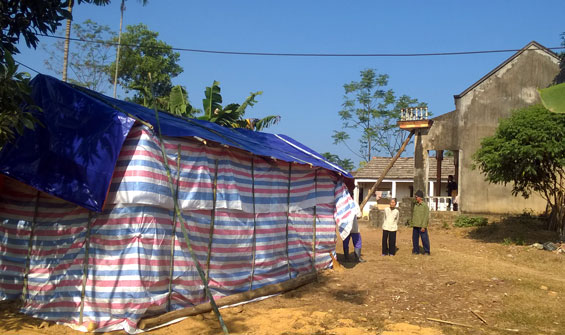 Ở gần nhà ông Nàng, mấy gian nhà xây cấp 4 của ông Nguyễn Văn Mùi cũng trong tình cảnh nứt nền, tường và có hiện tượng nghiêng muốn đổ. Dù vậy, gần tháng nay ông Mùi vẫn chưa chuyển ra ở bên ngoài. Khi được hỏi tại sao biết nguy hiểm nhưng cả gia đình vẫn ở lại trong nhà, ông Mùi ngậm ngùi: Gia đình tôi còn mẹ già trên 90 tuổi. Cụ bị tai biến nên yếu lắm, nếu để cụ ra ngoài lán ở tạm, sương gió, rét mướt thế này chắc không chịu nổi. Lỡ cụ làm sao, con cháu lại ân hận. Do vậy, biết là nguy hiểm nhưng vẫn chưa chuyển ra.