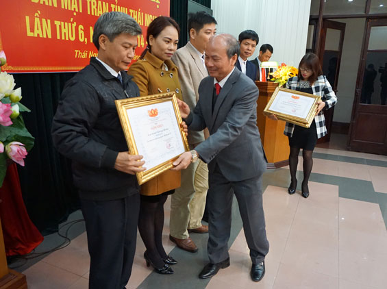 Nhân dịp này, Ủy ban MTTQ tỉnh đã tặng Bằng khen cho 43 tập thể, 25 cá nhân có thành tích xuất sắc trong công tác Mặt trận năm 2015 (ảnh).