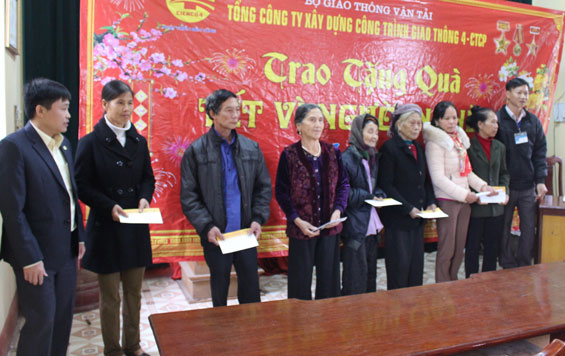 Tại các địa phương, đại diện Tổng Công ty Sienco 4 đã thăm hỏi, động viên các gia đình cố gắng vươn lên, khắc phục mọi khó khăn trong cuộc sống. Nhân dịp này Tổng Công ty đã trao tặng 200 suất quà cho 200 gia đình của 10 xã trên, trị giá mỗi suất quà 500 nghìn đồng. Đây là số tiền do các cán bộ, công chức, viên chức, người lao động của Tổng Công ty quyên góp ủng hộ nhằm giúp đỡ những gia đình có hoàn cảnh khó khăn.