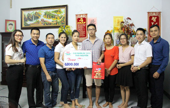 Tối 18-8, Câu lạc bộ Nhân ái (CLB) đã đến thăm và trao số tiền hỗ trợ 6,8 triệu đồng cho tân sinh viên có hoàn cảnh khó khăn là em Nguyễn Khánh Huy, trú tại xóm 6, xã Sơn Cẩm (Phú Lương).