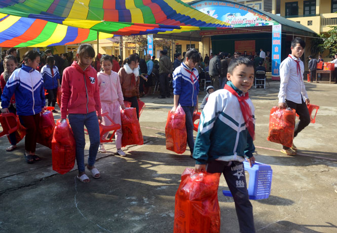 Ông Hoàng Văn Rì, dân tộc Mông, ở xóm Lũng Hoài cho biết: Nhà tôi ở tận khu Lũng Chó, muốn ra khu vực trung tâm xóm phải đi bộ hơn 2km đường rừng. Thế nên sáng nay tôi đã đi từ lúc gần 6 giờ. Đời sống của bà con ở Lũng Hoài giờ đã khá hơn trước, nhưng vẫn còn nhiều khó khăn lắm. Trong đó, khu Lũng Chó có 9 gia đình đều là hộ nghèo. Được nhận quà tặng gồm tiền mặt và bánh kẹo, bà con chúng tôi vui lắm... Cháu Nguyễn Hữu Thụ, học sinh lớp 8A, Trường Phổ thông dân tộc bán trú THCS Thượng Nung cũng vui không kém: Cháu được tặng bánh kẹo cùng một chiếc áo mới để đến trường và diện Tết. Bây giờ mỗi khi đi học, cháu không còn lo bị rét nữa.