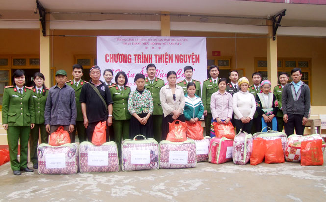 Những ngày giáp Tết Nguyên đán, dù công việc của cán bộ, chiến sĩ Công an tỉnh còn bộn bề với nhiệm vụ giữ gìn an ninh, trật tự cho nhân dân vui Xuân, nhưng nhiều đơn vị vẫn tranh thủ, sắp xếp thời gian, tổ chức các đoàn tình nguyện hướng về vùng sâu, vùng xa đặc biệt khó khăn để trao những gói quà Tết, tổ chức nhiều hoạt động giúp đỡ nhân dân thiết thực, ý nghĩa. Chi đoàn Cụm thi đua số 1 phối hợp với Đoàn Thanh niên Sở Ngoại vụ và Đoàn Thanh niên Trường THPT Chuyên Thái Nguyên tặng 1 máy lọc nước, 100 chiếc khăn quàng đỏ, 24 đôi ủng cho các em học sinh Trường Tiểu học Lũng Luông (Võ Nhai). Chi đoàn Xây dựng lực lượng - Hậu cần đã lắp đặt đường điện chiếu sáng có chiều dài 1,5km tại xóm Nạ Á, xã Phượng Tiến (Định Hóa). Chi đoàn Phòng Phòng chống phản động và chống khủng bố trao tặng 50 phần quà, 200 chiếc chăn, 1 tạ gạo, quần áo, giày dép có tổng trị giá 20 triệu đồng tại Lũng Hoài, xã Thượng Nung (Võ Nhai).