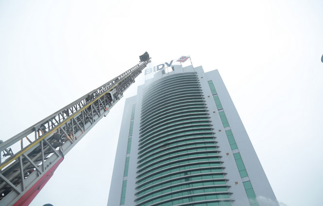 Cháy lớn trên tầng cao, nhiều người người bị mắc kẹt bên trong tòa nhà… là tình huống trong buổi thực tập phương án chữa cháy và cứu nạn, cứu hộ diễn ra sáng 17-3 tại Ngân hàng Thương mại CP Đầu tư và Phát triển Việt Nam (BIDV) Chi nhánh Thái Nguyên (T.P Thái Nguyên).
