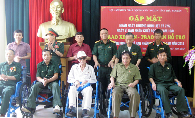 Tại buổi gặp mặt, các đại biểu đã cùng nhau ôn lại truyền thống yêu nước, ca ngợi tinh thần đấu tranh anh dũng, quả cảm và sự cống hiến to lớn của những người con ưu tú, đã hiến dâng tuổi thanh xuân của mình co Tổ quốc, trong đó có nạn nhân CĐDC. Để góp phần giảm bớt khó khăn cho nạn nhân CĐDC, Hội trao tặng xe lăn do Tổ chức trả lại tuổi thơ khu vực Đông Nam Á tài trợ cho 25 nạn nhân CĐDC có hoàn cảnh đặc biệt khó khăn (mỗi chiếc trị giá 5,5 triệu đồng).. Đồng thời trao 103 suất quà, 250 bộ sách giáo khoa, 5.000 cuốn vở viết và tiền hỗ trợ cho 15 trường hợp nạn nhân CĐDC mắc bệnh hiểm nghèo; trao tiền hỗ trợ làm nhà, sửa nhà cho 17 trường hợp nạn nhân CĐDC nghèo, với tổng số tiền hỗ trợ 795 triệu đồng được trích từ Quỹ nạn nhân CĐDC tỉnh.