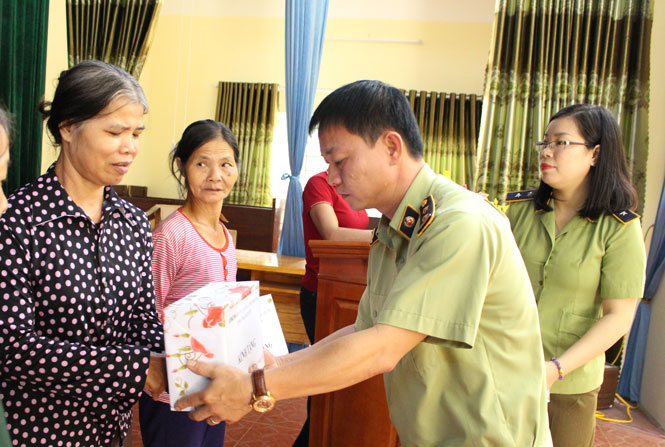 Theo đó, Công đoàn Cục QLTT đã trao tặng 10 suất quà cho 10 gia đình có hoàn cảnh khó khăn trên địa bàn xã Phúc Lương. Mỗi suất quà trị giá 500 nghìn đồng, bao gồm: Quần áo, giày dép, máy sấy tóc, bóng điện...