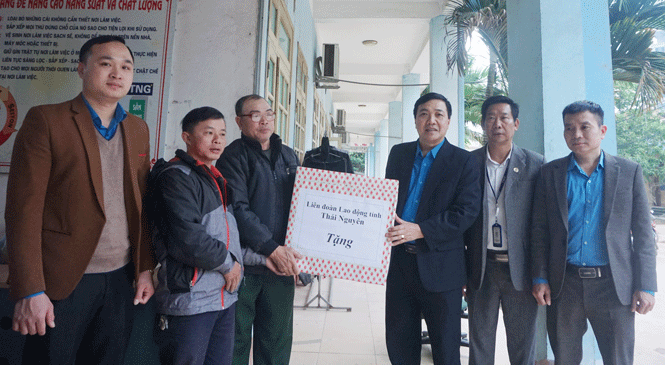 Trước đó, ngày 31-1, LĐLĐ tỉnh cũng đã đến tặng quà Khu nhà tọ tự quản công nhân tại Khu công nghiệp Điềm Thụy (Phú Bình). Tại các nơi đến thăm, lãnh đạo LĐLĐ đã quan tâm hỏi thăm tình hình lương, thưởng, điều kiện đón Tết của công nhân. Đồng thời tiếp tục ghi nhận những trường hợp đang gặp khó khăn để các cấp công đoàn kịp thời giúp đỡ, tạo điều kiện cho công nhân an vui đón tết.