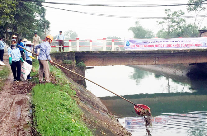 Hưởng ứng Ngày Nước thế giới (22-3) với chủ đề “Nước cho tất cả - không để ai bị bỏ lại phía sau”, sáng 22-3, Công ty cổ phần Nước sạch Thái Nguyên tổ chức treo băng rôn, khẩu hiệu, tham gia tổng vệ sinh, dọn dẹp môi trường tại Khu vực Xí nghiệp Nước sạch Tích Lương (ảnh).