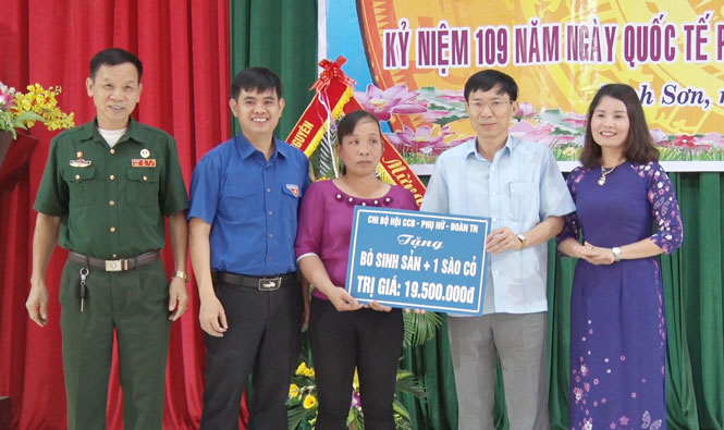 Cũng tại Lễ phát động, Hội Liên hiệp Phụ nữ Thành phố phối hợp với Thành đoàn Sông Công, Chi hội Cựu chiến binh xóm Bá Vân 4 (xã Bình Sơn) cho gia đình chị Trương Thị Sáu, thuộc diện hộ nghèo của xóm vay 1 con bò sinh sản (trị giá 18 triệu đồng) và trồng giúp gia đình chị 360m2 cỏ. Ngoài ra, Hội LHPN Thành phố còn phối hợp với Công ty TNHH Doosun Việt Nam (phường Cải Đan, T.P Sông Công) hỗ trợ 39 hội viên phụ nữ khởi nghiệp, phát triển kinh tế gia đình, số tiền 340 triệu đồng; nhận đỡ đầu 13 học sinh có hoàn cảnh khó khăn trên địa bàn Thành phố, số tiền học bổng là 250 triệu đồng; hỗ trợ 3 hội viên phụ nữ và 1 học sinh ở xã Bình Sơn có hoàn cảnh khó khăn, vươn lên trong học tập, số tiền 21 triệu đồng. Bên cạnh đó, Hội cũng phối hợp với Công ty cổ phần Dược và Thiết bị y tế Hà Tuyên, Chi hội Phụ nữ tổ dân phố 3 Tân Sơn (phường Lương Sơn) trao tặng 26 suất quà cho phụ nữ nghèo, cận nghèo là người dân tộc thiểu số, công giáo, mỗi suất trị giá 800 nghìn đồng; tặng 152 thùng rác cho 76 hộ dân ở xóm Long Vân (xóm điểm trong xây dựng nông thôn mới ở xã Bình Sơn)…
