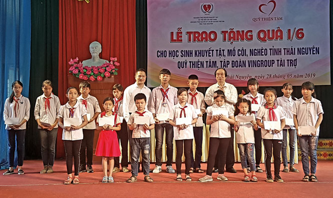Tại buổi Lễ, đại diện Quỹ Thiện tâm thuộc Tập đoàn VINGROUP đã gửi tặng 150 suất quà (mỗi suất trị giá 300.000 đồng) cho học sinh khuyết tật, mồ côi, học sinh nghèo thuộc 2 địa bàn T.P Thái Nguyên và T.P Sông Công. Trong đó có 70 suất quà dành cho học sinh khuyết tật, mồ côi, học sinh nghèo thuộc T.P Sông Công; 80 suất quà dành cho học sinh khuyết tật, mồ côi, học sinh nghèo thuộc T.P Thái Nguyên.