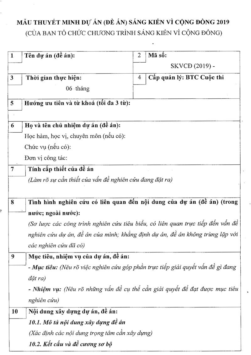 * Đối với các dự án dự thi cần có kế hoạch hoạt động, kế hoạch tài chính kèm theo.