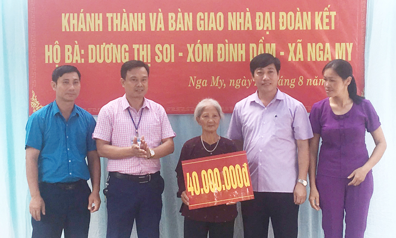 Cũng ở xã Nga My, vợ chồng anh Nguyễn Văn Tuấn, ở xóm Dinh C, có 5 người con đều đang trong độ tuổi đi học, thu nhập của cả gia đình chỉ trông chờ vào 3 sào ruộng. Ngôi nhà cũ đã xuống cấp nghiêm trọng mà chi tiêu hàng ngày còn thiếu trước hụt sau nên gia đình anh không có khả năng xây dựng nhà ở mới. May mắn thay, sau khi được khảo sát, gia đình anh đã được MTTQ hỗ trợ xây dựng ngôi nhà Đại đoàn kết.