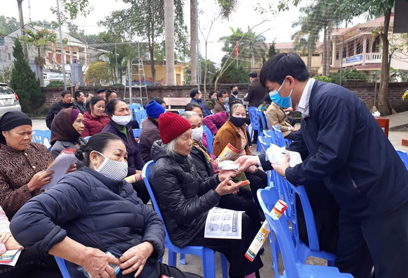 Ngày 17-2, tại nhà văn hóa xóm Tân Lập, thị trấn Sông Cầu (Đồng Hỷ), Hội Nông dân tỉnh phối hợp với Hội Nông dân huyện, Trung tâm Y tế huyện Đồng Hỷ tổ chức tuyên truyền, hướng dẫn phương pháp phòng chống dịch COVID-19 cho gần 100 hội viên nông dân của thị trấn Sông Cầu.