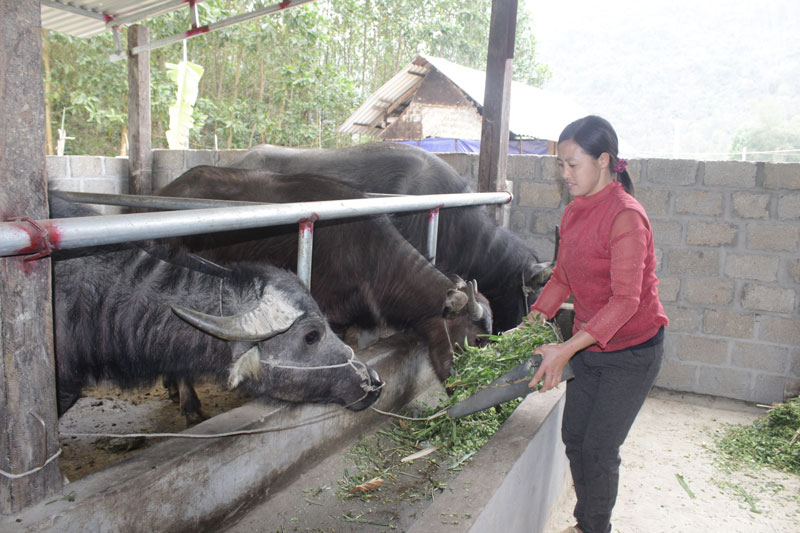 Chị Hoàng Thị Công, dân tộc Mông, hội viên Chi hội Phụ nữ xóm La Mạ cho biết: Hai vợ chồng tôi cũng chăn nuôi trâu, bò sinh sản và thịt đã lâu nhưng với quy mô nhỏ. Năm 2019, được sự hỗ trợ, giúp đỡ của Hội Phụ nữ, gia đình đã mạnh dạn vay 100 triệu đồng của Ngân hàng Chính sách Xã hội, cộng với số tiền tích cóp mấy năm nay để mua thêm trâu, bò giống và làm lại chuồng trại sạch sẽ hơn. Đến nay, gia đình đang nuôi 4 con trâu, 1 con bò thịt. Dự kiến, sau khi vỗ béo và bán, mỗi con trâu sẽ lãi trên 10 triệu đồng. Ngoài việc được tạo điều kiện cho vay vốn ngân hàng, vợ chồng tôi cũng thường xuyên nhận được sự quan tâm, chia sẻ của tổ chức Hội Phụ nữ. Điều này đã giúp tôi thêm tự tin tập trung vào sản xuất.