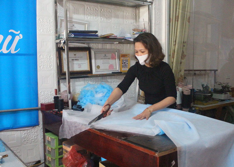 Hưởng ứng lời kêu gọi “Toàn dân tham gia ủng hộ phòng, chống dịch COVID-19” của Ủy ban MTTQ các cấp, chị Vi Thị Huệ, sinh năm 1977, ở xóm Hưng Thái, xã Hóa Thượng (Đồng Hỷ) đã tự mua vải về may khẩu trang để cấp phát miễn phí cho bà con trong xóm, mỗi người 1 chiếc.
