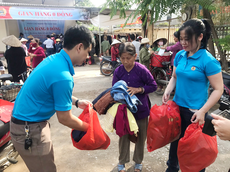 Ngày 14-5, Liên đoàn Lao động T.P Sông Công đã phối hợp với UBND xã Bình Sơn tổ chức “Phiên chợ nghĩa tình, gian hàng 0 đồng”.