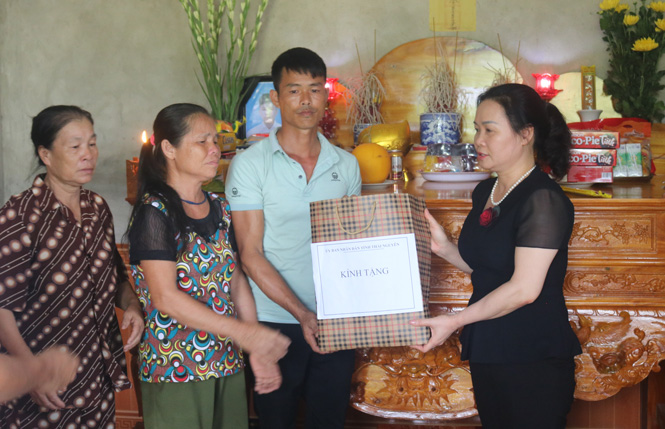 Gia đình các nạn nhân được thăm hỏi dịp này là: Ông Vũ Hồng Đức, tổ 1, phường Mỏ Chè (T.P Sông Công); bà Dương Thị Thập, tổ 1, phường Tân Thịnh (T.P Thái Nguyên); ông Nguyễn Văn Sinh, xóm Táo 2, xã Sơn Cẩm (T.P Thái nguyên); ông Lê Minh Hiếu, xóm An Bình, xã An Khánh (Đại Từ); ông Trần Mạnh Hùng, xóm Phú Hạ, xã Bản Ngoại (Đại Từ).