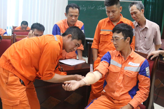 Chị Dương Thị Thu Hiền, công nhân trực vận hành (Điện lực T.P Sông Công) chia sẻ: Là ngành nghề thuộc nhóm 3 đòi hỏi nghiêm ngặt về các điều kiện ATLĐ, hằng năm, chúng tôi được tập huấn sử dụng phần mềm kiểm soát an toàn bằng hình ảnh; thực hành cấp phiếu công tác, lệnh công tác cho các tổ, đội trước khi đi làm ngoài lưới điện. Ngoài tập huấn về công tác chuyên môn thì 100% cán bộ còn được tập huấn về công tác phòng, chống cháy nổ, phương pháp sơ cấp cứu người bị điện giật...