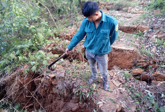Thấp thỏm lo âu là tâm lý chung của các hộ dân ở xóm Ao Soi, xã Na Mao khi nhà ở ngày càng xuất hiện thêm nhiều vết nứt. Khu vực núi Hồng là nơi người dân phát hiện có nhiều khe nứt và những hố sụt lún, có vết nứt rộng người chui lọt, dài hàng chục mét và ngày càng xé rộng, ăn sâu vào lòng núi. Tại thửa đất của hộ ông Hoàng Văn Kính, cũng ở xóm Ao Soi (nằm theo trục dọc thẳng phía dưới bãi đổ thải của doanh nghiệp) đã phát hiện vết nứt dài 40m, rộng 1m, sâu 2m.