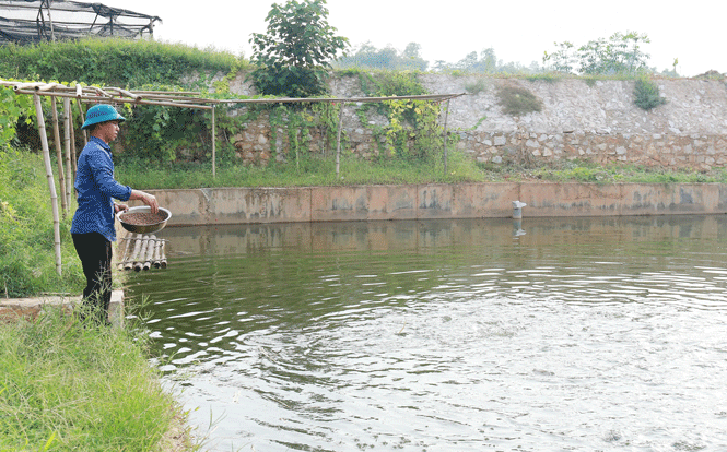 Vào vụ đảo bầu hoặc xuất bán cây giống, vườn ươm có vài ba chục nhân công làm việc mỗi ngày, với mức thu nhập bình quân từ 200 - 250 nghìn đồng/ngày. Người thạo việc mức thu dao động từ 300 - 500 nghìn đồng/ngày. Đang dở câu chuyện anh Tuân cười, giám đốc nhà tớ đã về. Chị Nguyễn Thị Nguyệt vừa xong việc phát dọn đường với chị em trong chi hội Phụ nữ. Buông cuốc trên vai xuống, chị xách xô thức ăn mang ra ao chăn cá. Anh Tuân đỡ xô cám từ tay vợ, đùa: Giám đốc để em.