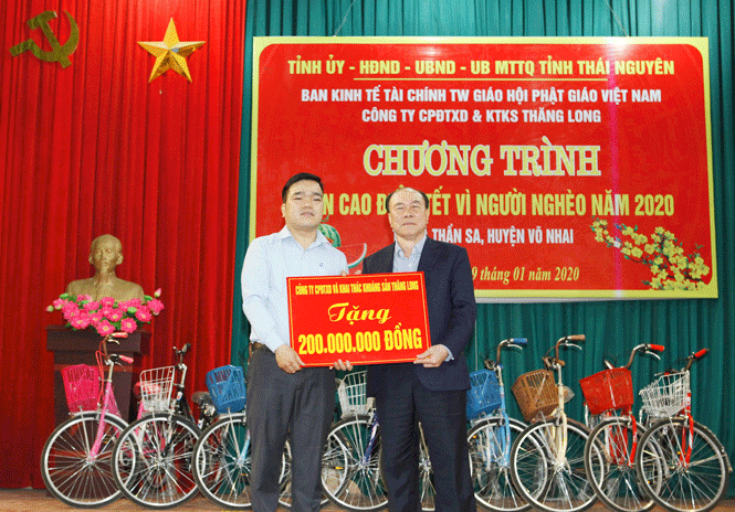 Đặc biệt, với phương châm “Nhà nhà đều có tết, người người đều có Tết, hưởng ứng cuộc vận động “Tuần cao điểm tết vì người nghèo” Xuân Canh Tý 2020, Công ty đã tặng 200 triệu đồng cùng nhiều phần quà có giá trị hỗ trợ cho các hộ gia đình nghèo xã Thần Sa ăn Tết. Ngoài ra, Công ty còn hỗ trợ một số địa phương trong và ngoài tỉnh những phần quà có ý nghĩa, giúp cho một số hộ nghèo, cận nghèo, gia đình chính sách, gia đình người có công với cách mạng có hoàn cảnh khó khăn và đối tượng bảo trợ xã hội.