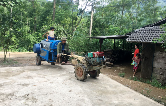 Người Mông Khuổi Mèo, xã Sảng Mộc (Võ Nhai) đã mạnh dạn đầu tư mua máy tuốt lúa về phục vụ sản xuất và làm dịch vụ.