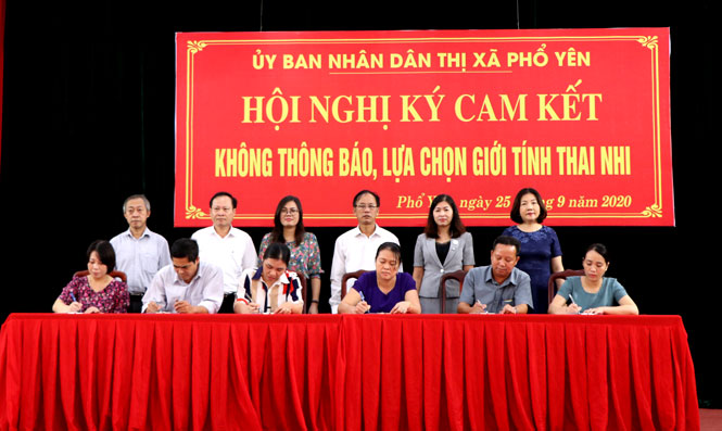Sáng 25-9, T.X Phổ Yên tổ chức Hội nghị ký cam kết không thông báo, lựa chọn giới tính thai nhi dưới mọi hình thức cho các trạm y tế và cơ sở y tế tư nhân của 18 xã, phường, nhằm giảm thiểu tình trạng mất cân bằng giới tính khi sinh trên địa bàn.