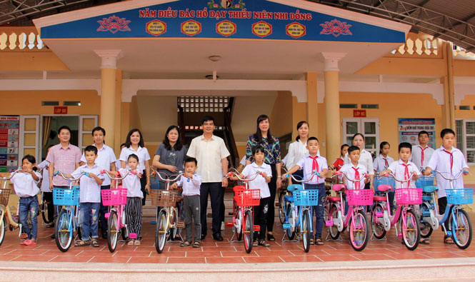 Tại Trường THCS Hóa Thượng, lãnh đạo huyện đã tặng xe đạp cho 20 học sinh nghèo vượt khó vươn lên học tốt ở 3 trường: THCS, Tiểu học số 1 và Tiểu học số 2 Hóa Thượng (ảnh). Tại Trường Mầm non số 1 Hóa Thượng, Đoàn đã trao 2 thùng quà tặng các cháu thiếu nhi. Tổng giá trị quà tặng đợt này là 32 triệu đồng. Nhân dịp này, lãnh đạo huyện đề nghị giáo viên các trường tiếp tục chăm sóc, nuôi dạy các cháu thật tốt, góp phần nâng cao chất lượng giáo dục toàn diện trên địa bàn.